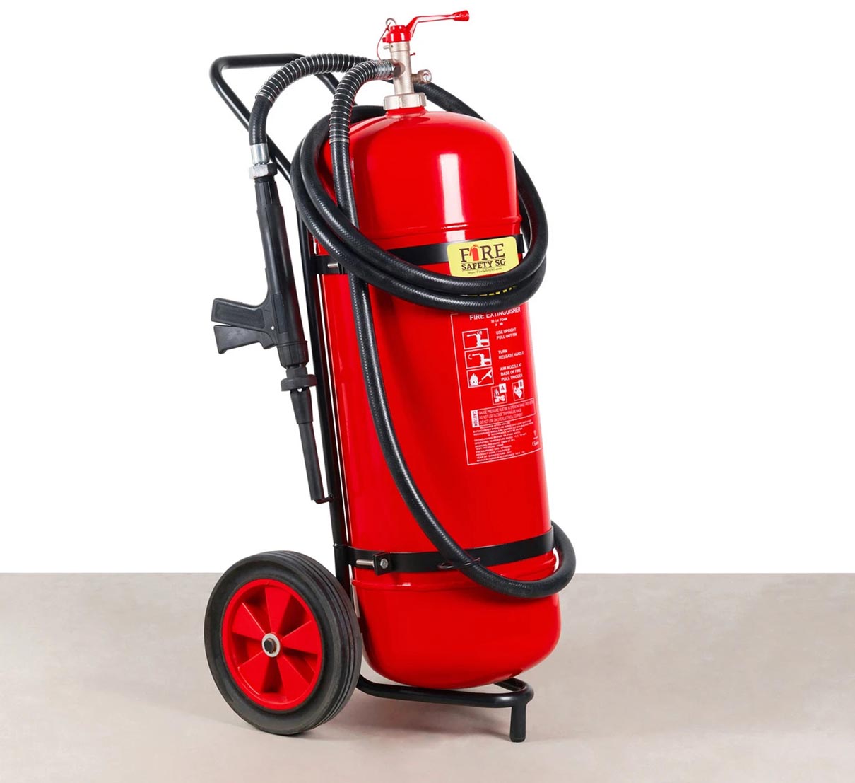 Bình chữa cháy xe đẩy bột FOAM Renan 45 lít có xe đẩy loại lớn thường dùng để trang bị cho những khu vực rộng có nguy cơ xảy ra xảy ra cháy nổ cao như trạm xăng dầu, xưởng sản xuất, nhà máy chế biến, kho hàng, bến bãi,...Loại bình chữa cháy xe đẩy này có thể chữa cháy tốt cho các loại đám cháy chất rắn, lỏng, khí và cả các đám cháy bắt nguồn từ các thiết bị điện, điện tử. Bọt chữa cháy sau khi xịt vào đám cháy sẽ bám bào các vật thể cháy nên có thể ngăn chặn lửa bùng phát và lan rộng.