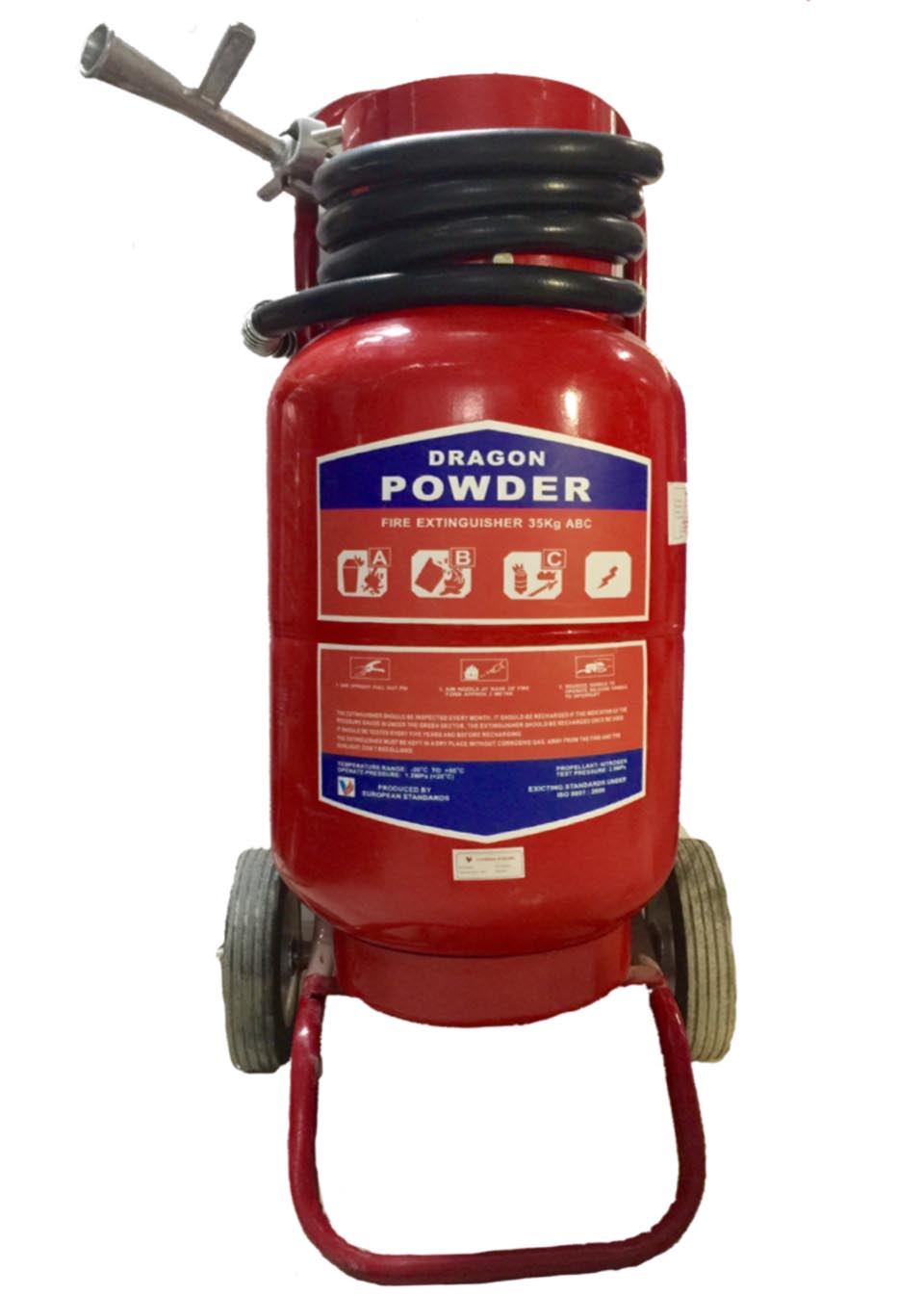 Bình chữa cháy xe đẩy DRAGON ABC - 35KG - MFTZL35 Việt Nam loại xe đẩy bột ABC 35kg được sử dụng rộng rãi trong các công trình có quy mô lớn. Phạm vi chữa cháy Dragon Powder 35kg đa dạng bao gồm cả chất lỏng lẫn rắn như: xăng, dầu, khí ga, gỗ, vải, giấy, điện… Loại bình lớn, có xe đẩy giúp việc di chuyển vô cùng thuận tiện.