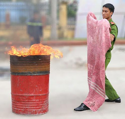 Khi phát hiện ra sự cố cháy nổ, cần nhúng chăn vào nước để nước thấm đều lên mặt & phủ lên đám cháy để ngăn cách đám cháy với môi trường bên ngoài, không cho ôxy của môi trường tràn vào vùng cháy.