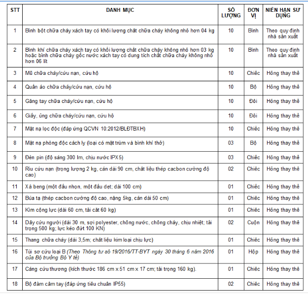 DANH MỤC, SỐ LƯỢNG PHƯƠNG TIỆN PHÒNG CHÁY, CHỮA CHÁY VÀ CỨU NẠN, CỨU HỘ TRANG BỊ CHO 01 ĐỘI PHÒNG CHÁY VÀ CHỮA CHÁY CHUYÊN NGÀNH